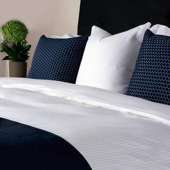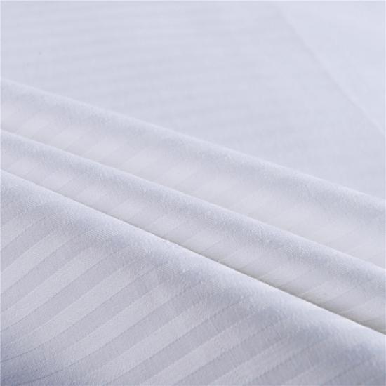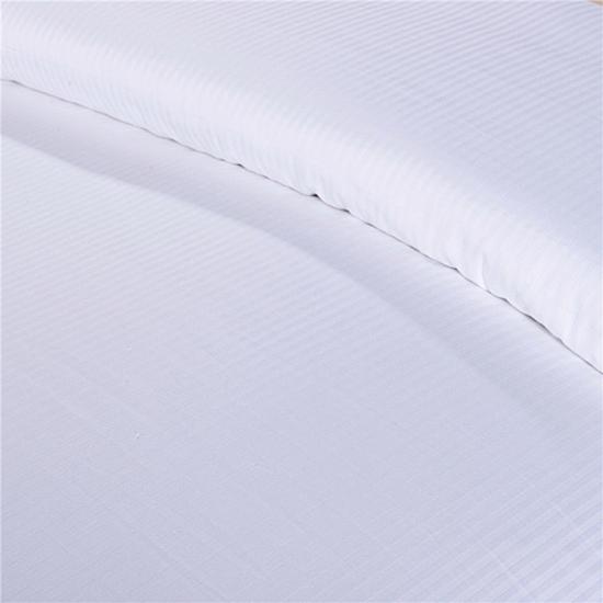 Nuestro lujoso juego de cama de rayas blancas de algodón y poliéster es ligero, transpirable y fresco al tacto.