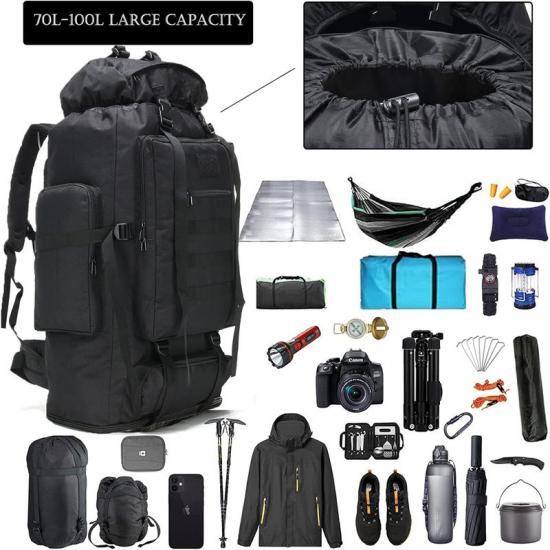 Esta mochila está hecha de tela Oxford 900D resistente, capaz de soportar cargas pesadas. Con una capacidad de 70 L, ofrece espacio suficiente para guardar todo tu equipo y artículos esenciales.
