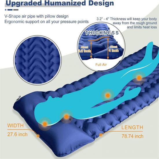 Con su exclusivo diseño en forma de V, esta colchoneta inflable para dormir está diseñada ergonómicamente para soportar cualquier presión.