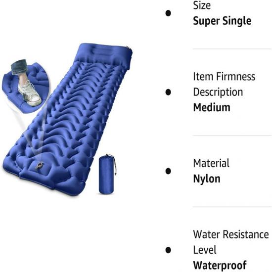 Sin tener que inflar la almohadilla con la boca, la mano o llevando una bomba, simplemente pise la entrada de aire en la parte inferior de la almohadilla.