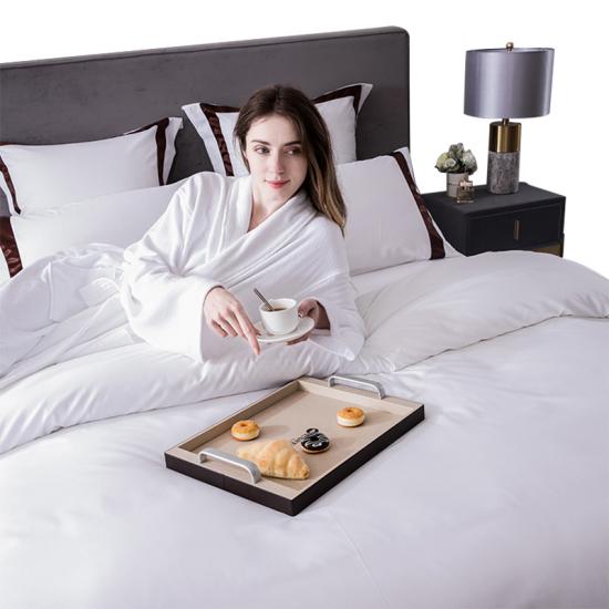 Fresco al tacto El juego de colcha de algodón egipcio para hotel proporciona una posición estable para su cama. Nuestras lujosas sábanas de algodón son ligeras, transpirables y frescas al tacto, lo que le brinda una experiencia de sueño tranquilo y refrescante. |