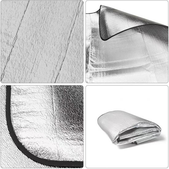 Esterilla de espuma de aluminio de tamaño 57 x 77 pulgadas/150 x 200 cm y pesa solo 0,44 libras/0,2 kg, con características impermeables,