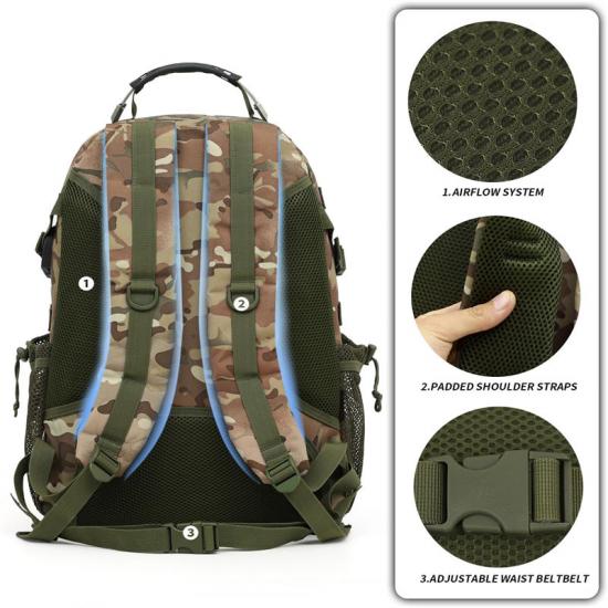 La mochila militar es resistente, liviana, duradera e impermeable, con características resistentes al desgarro, lo que la hace perfecta para cualquier aventura. La mochila está hecha de materiales de alta calidad que pueden soportar entornos hostiles y un uso intensivo.