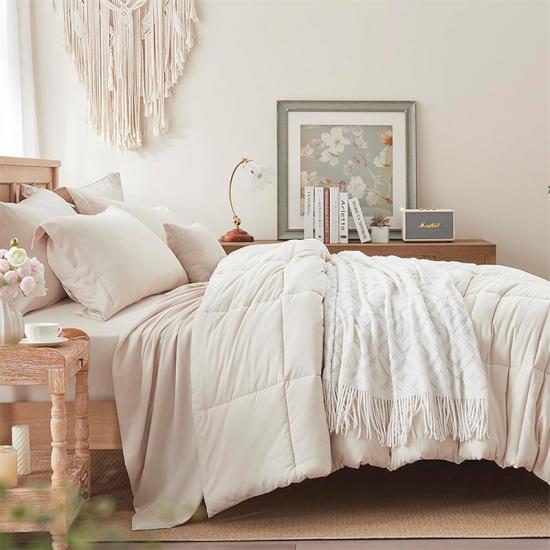 Este juego de cama king size de Red Cross Supplies, a bajo precio, es ideal para todas las estaciones. Su relleno alternativo de plumón de alta calidad de 270 g/m² ofrece una comodidad y suavidad inigualables. Su acolchado cuadrado, bien diseñado, evita eficazmente el desplazamiento y la aglomeración del relleno, e incluso después de muchos lavados, conserva su textura original y evita la formación de bolitas. Su material ligero y cálido garantiza un confort fresco en las noches calurosas de verano y calidez en las noches frías.