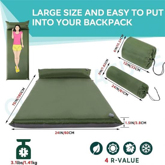 La colchoneta inflable para dormir barata está cubierta por una tela impermeable y rellena con espuma viscoelástica de 1,5 pulgadas de espesor.