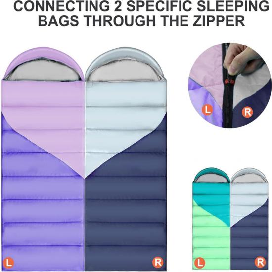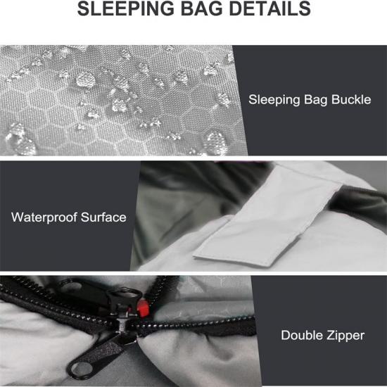 El saco de dormir de poliéster de 1,8 kg / 3,96 lbs cuenta con cremalleras de doble cara de alta calidad que no se enganchan, y los pies tienen cremalleras ajustables para regular la cantidad de aire caliente o frío que entra o sale del saco. Esto significa que se puede ajustar para adaptarse a las necesidades individuales de diferentes entornos y temperaturas. Incluso puedes utilizar el saco de dormir totalmente abierto como manta, lo que aumenta enormemente su versatilidad y practicidad.