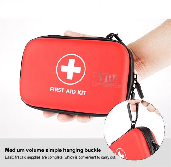 10 comprimidos de alcohol, 10 comprimidos antipicazón, 1 torniquete, 1 alfiler, 1 vendaje de PBT, 1 tijera, 10 hisopos de algodón, 1 cinta adhesiva, 2 almohadillas para los ojos, 4 gasas estériles, 1 manual de usuario, 1 pinza, 1 vendaje triangular, 10 comprimidos de yodóforo, 20 vendajes impermeables, 1 paquete de EVA