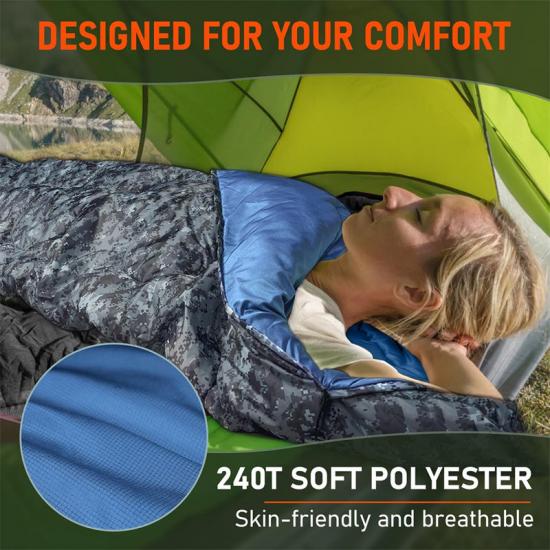 A: El saco de dormir cálido con precios de descuento está hecho de forro de poliéster 210T y otros materiales de alta calidad.