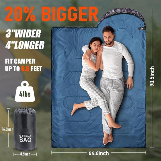 Las dimensiones del saco de dormir militar con descuento (228,7 x 82,7 cm) ofrecen suficiente espacio para que una sola persona se mantenga abrigada incluso en climas fríos. Su material grueso y su amplia capacidad lo hacen ligero, con solo 3 kg. Los dos sacos de dormir individuales incluyen dos colchonetas de espuma viscoelástica de 183,7 x 56,8 cm para una experiencia de sueño cálida y confortable. Además, este saco de dormir tipo manta militar con descuento incluye una bolsa de compresión y una banda elástica comprimible para facilitar su almacenamiento y transporte.