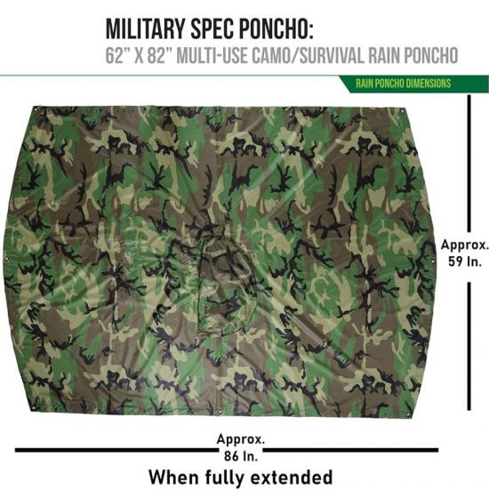 R: Sí, el poncho está diseñado con un cordón en la cintura y 8 ojales de metal resistentes para permitir un uso fácil como carpa de supervivencia, recolección de agua, camilla de transporte de emergencia, cubierta de hamaca, divisor de carpa, pantalla de privacidad y refugio oculto.