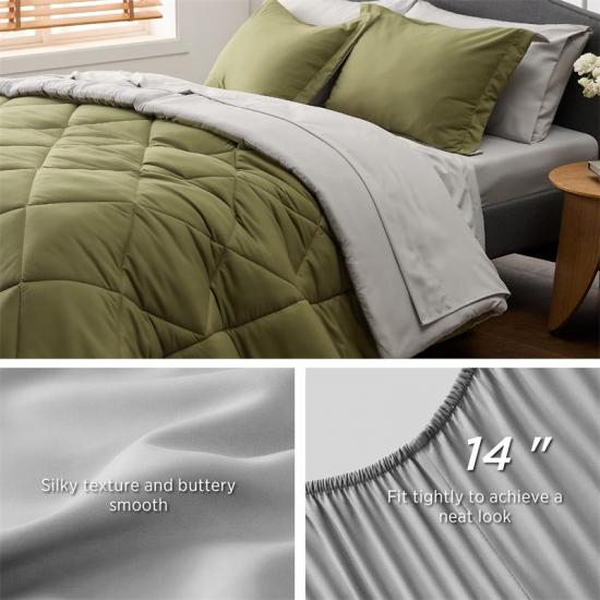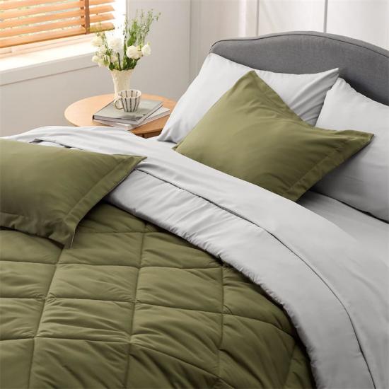 Una de las características más destacadas de esta asequible sábana de emergencia es su diseño de doble cara. Puedes voltear fácilmente el edredón y la colcha para cambiar de estilo y color según tus preferencias. El diseño de la funda de almohada tipo sobre no solo es elegante y generoso, sino que también garantiza la seguridad de la almohada. El acolchado con patrón de rombos evita que el relleno se mueva, lo que te proporciona un sueño más seguro.
