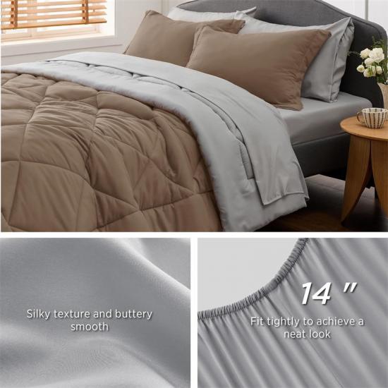 Esta ropa de cama de supervivencia de emergencia de alta calidad está cuidadosamente elaborada con materiales seleccionados e incluye 1 edredón de 260 x 240 cm, 1 sábana ajustable de 210 x 180 x 35 cm, 1 sábana plana de 270 x 260 cm, 2 fundas de almohada de 50 x 100 cm y 2 fundas de almohada de 50 x 90 cm. Toda la ropa de cama de supervivencia de emergencia de doble cara está hecha con rellenos de microfibra de alta calidad y meticulosamente acolchada para mejorar la suavidad y la durabilidad, lo que garantiza que se le proporcione una calidez confortable durante todo el año.