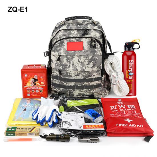 Hacha, linterna de 3 modos, tarjeta multifuncional, pulsera de supervivencia, silbato de doble tubo, sierra de alambre, cordón de paracaídas, manta de emergencia, botiquín completo de primeros auxilios, etc.