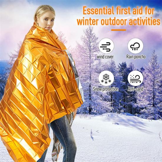 Protección eficaz: Frustrar Producto de emergencia Manta bien diseñada que proporciona protección en los entornos más duros. Pueden bloquear eficazmente la lluvia, la nieve y otros climas y mantenerse secos en ambientes húmedos, fríos o lluviosos. Gracias a sus propiedades reflectantes, la manta también se puede utilizar como dispositivo de señalización para salvar vidas, proporcionando a los buscadores un objetivo claro durante la noche o en condiciones climáticas adversas.