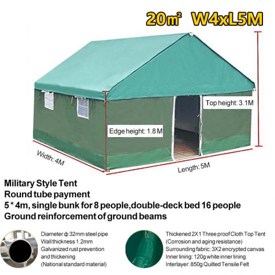Cuando ocurren desastres como inundaciones, huracanes o terremotos, nuestra Carpa de Emergencia es la solución inmediata. Se utiliza ampliamente en emergencias de socorro, ofreciendo protección inmediata a los afectados. Los militares la despliegan para establecer campamentos rápidamente durante las operaciones. Los equipos médicos la utilizan como punto de atención médica móvil. También es un elemento común en las donaciones de las Naciones Unidas, las reservas de emergencia de los gobiernos y las actividades de socorro de la Cruz Roja. Esta carpa tiene un diseño fácil de usar y de rápido montaje con piezas preensambladas. Fabricada con materiales de alta calidad, impermeables, resistentes al desgarro y duraderos, soporta las inclemencias del tiempo. Con múltiples opciones de color, puede elegir según las necesidades de visibilidad en diferentes escenarios de desastre. Su espacioso interior puede albergar una gran cantidad de suministros de emergencia y dar cabida a numerosos sobrevivientes, siendo un elemento clave de cualquier plan de respuesta ante emergencias.
