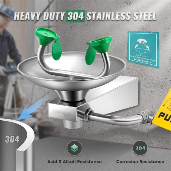 Nuestro lavaojos con ducha de lavabo para preparación para emergencias está fabricado con materiales de alta calidad para garantizar la durabilidad y estabilidad del lavaojos con ducha. El material principal es un recipiente de plástico ABS engrosado, combinado con acero inoxidable y revestimiento anticorrosión, lo que le permite mantener su rendimiento incluso en entornos hostiles de ácidos y álcalis fuertes. La boquilla lavaojos tiene un diseño exclusivo con 81 orificios de salida para garantizar que la columna de agua esté concentrada y sin salpicaduras. Con un diámetro de cuenca de 250 mm, este gran recipiente está diseñado para recoger agua de manera más eficiente y mantener los pisos limpios.