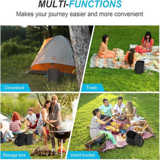 1 cubo de inodoro portátil con tapa, 1 bolsa de transporte, 1 caja de embalaje exquisita |