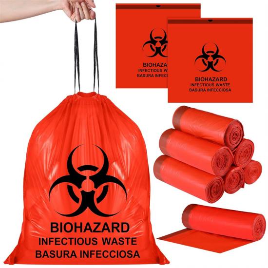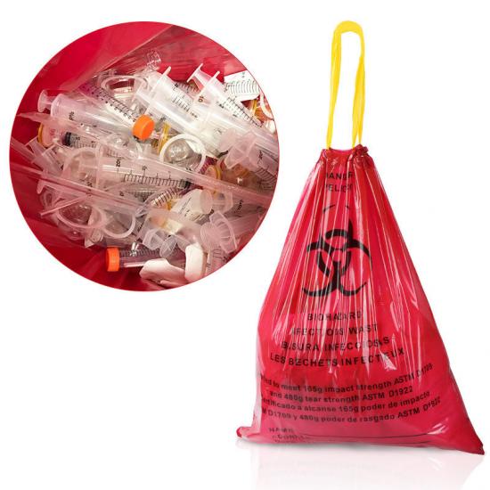 Las estaciones de enfermería necesitan recolectar y almacenar temporalmente diversos desechos médicos, la característica de tirar para cerrar de las bolsas de almacenamiento temporal de desechos hospitalarios con cordón mejora en gran medida la eficiencia del trabajo, las diferentes especificaciones satisfacen las diversas necesidades de las salas, el diseño a prueba de fugas garantiza un almacenamiento seguro de desechos.