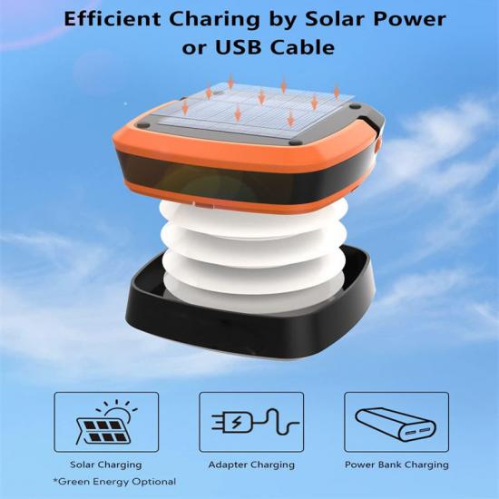 La luz de emergencia impermeable de la Reserva del Gobierno se carga por puerto USB y puede cargar rápidamente una batería externa u otro dispositivo en aproximadamente 2 horas. El cable USB necesario está incluido en el paquete. Además, la integración de paneles solares de alta calidad permite la carga solar, brindándole opciones de energía aún más flexibles. Durante sus actividades al aire libre, puede confiar en la luz solar para cargar sus dispositivos, manteniendo su movilidad libre y cómoda.