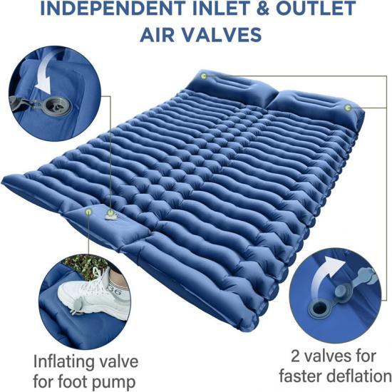 Esta colchoneta inflable para dormir viene con una bomba de pie incorporada que se infla con unos pocos pasos y se llena en 1-3