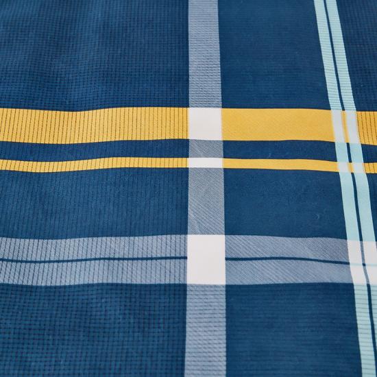 El juego de sábanas de algodón tamaño queen está hecho de tela de poliéster lisa. Los espacios entre líneas son de tamaño uniforme.