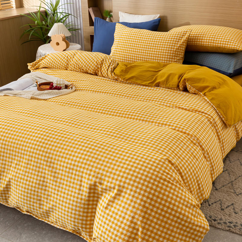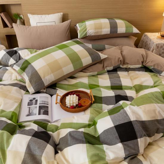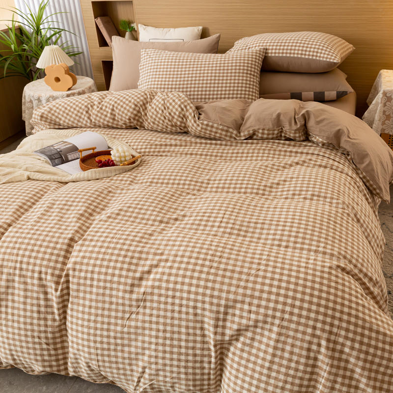 El juego de sábanas de 4 piezas para el hogar está hecho de tela de poliéster lisa. Los espacios entre líneas son de tamaño uniforme.