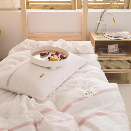 Los juegos de cama al por mayor están hechos de tela de poliéster lisa. Los espacios entre líneas son de tamaño uniforme. forma,