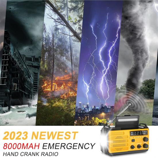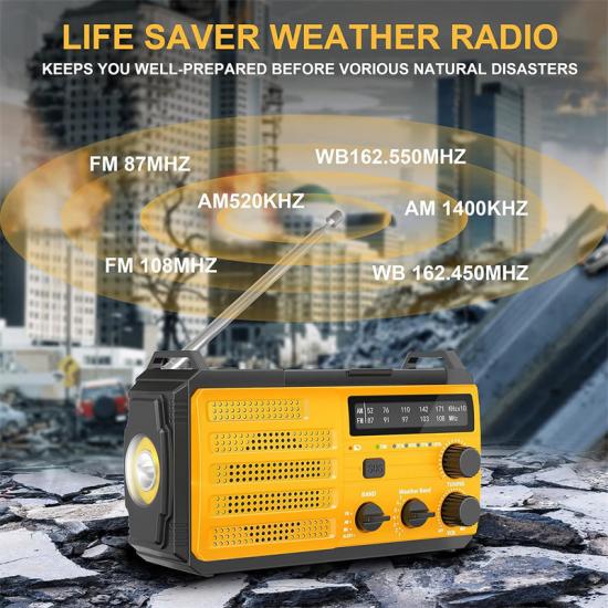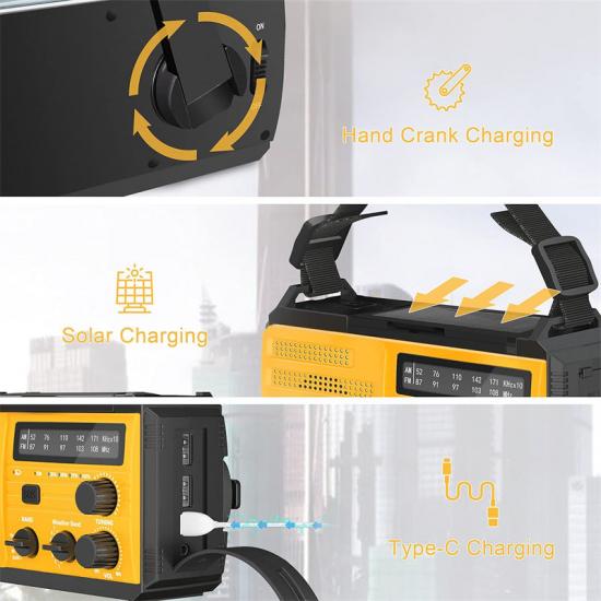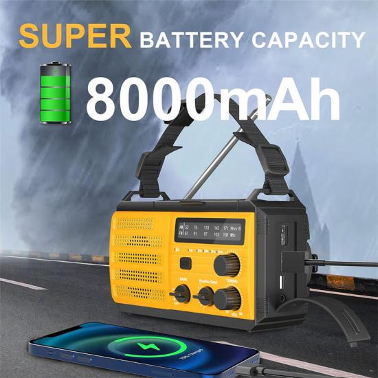 Radio portátil resistente con batería de 8000 mAh para donaciones benéficas y transmisiones meteorológicas Radio duradera resistente a impactos y alivio de inundaciones, ligera y multifuncional.
