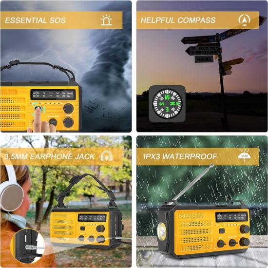 Radio duradera resistente a impactos y alivio de inundaciones, ligera y multifuncional.