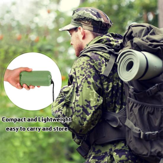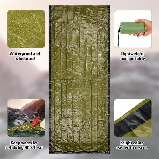 Se puede utilizar no solo como un saco de dormir resistente al desgaste de las reservas del gobierno, sino también como tapete, poncho, contenedor para derretir nieve, bolsa de campamento y recolector de agua para satisfacer sus diferentes necesidades.