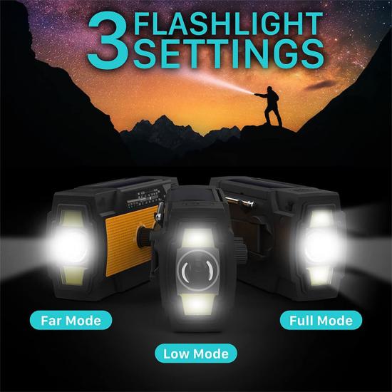 La radio con panel solar de la reserva gubernamental también cuenta con dos fuentes de luz: cuatro luces LED de lectura y una linterna de 1 W, que proporcionan suficiente brillo para protegerte de la oscuridad en situaciones de emergencia. Ya sea que estés al aire libre de noche, explorando la naturaleza o en una emergencia, estas dos fuentes de luz te proporcionarán una iluminación segura y confiable.