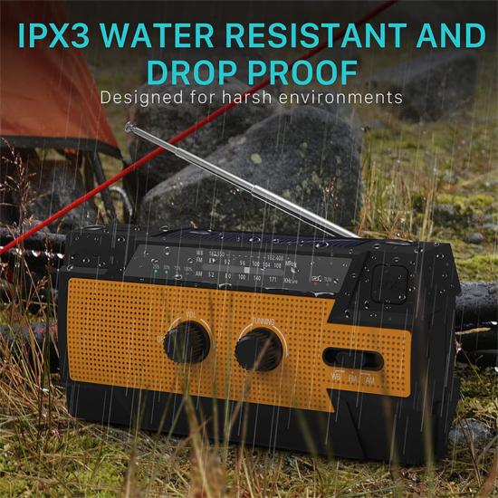 Radio con pilas AAA y acceso a radio meteorológica de emergencia de la NOAA. Con acceso a radio meteorológica de emergencia de la NOAA integrado, puede recibir con confianza los últimos pronósticos meteorológicos y noticias de emergencia de estaciones de la NOAA y AM/FM. Esto le permite mantenerse al día con la información meteorológica y de emergencia más reciente, lo que le proporciona una referencia oportuna y precisa para responder a todo tipo de emergencias.