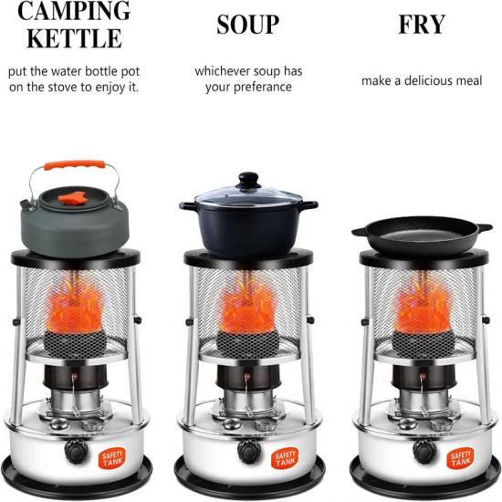 Portabilidad y versatilidad: La alta funcionalidad y la fácil portabilidad son las principales ventajas del diseño de nuestra estufa de queroseno Shelter Rescue. Su campana ajustable facilita y optimiza el control del fuego, agilizando la cocción, mientras que su asa ligera integrada facilita su transporte. Se convierte rápidamente en su estación de calor móvil, tanto en interiores como en exteriores. Además, esta estufa de queroseno ofrece opciones versátiles para hervir, cocinar y asar, lo que la hace ideal para actividades en interiores y exteriores durante la temporada de frío.
