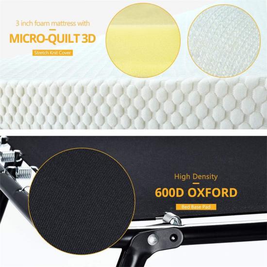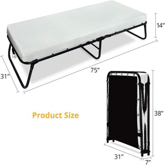 • Cama extra plegable para el hogar Inicio Cama plegable Topper de espuma viscoelástica extra plegable Estructura de metal resistente 74 x 40 pulgadas