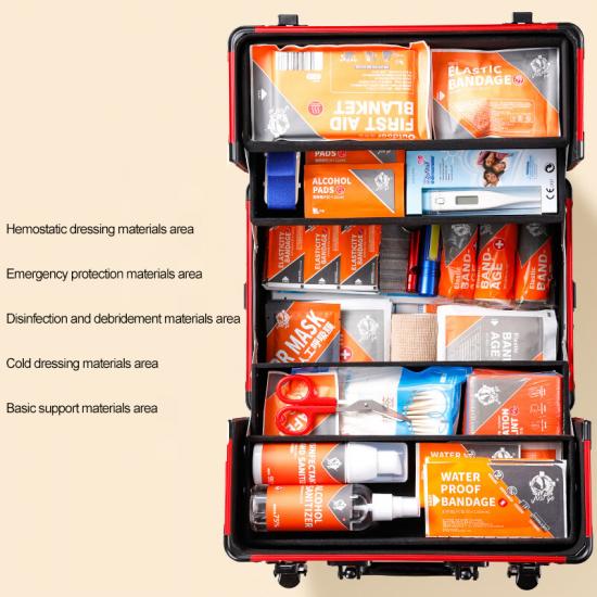 Kit de supervivencia con mochila portátil para exteriores de emergencia y torniquete para agencias gubernamentalesEste botiquín de aluminio para emergencias cuenta con una estructura compuesta de cuatro capas con un 99 % de impermeabilidad y resistencia a la humedad, lo que facilita un rescate médico rápido en zonas de desastre. El marco de aluminio soporta hasta 100 kg, cuenta con un diseño de compartimento interno de doble capa y una bandeja de clasificación de medicamentos de tres rejillas que satisface las necesidades de clasificación científica de medicamentos en zonas de desastre. Sus cerraduras de alta seguridad y su diseño portátil permiten llevarlo tanto en la mano como al hombro. Se ha utilizado en más de 200 operaciones de socorro en desastres naturales en todo el mundo, lo que lo convierte en una opción confiable para equipos de rescate profesionales.