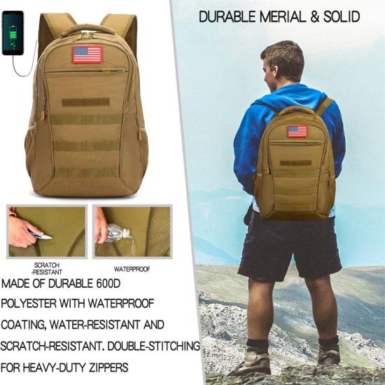 La mochila militar es resistente, liviana, duradera e impermeable, con características resistentes al desgarro, lo que la hace perfecta para cualquier aventura. La mochila está hecha de materiales de alta calidad que pueden soportar entornos hostiles y un uso intensivo.