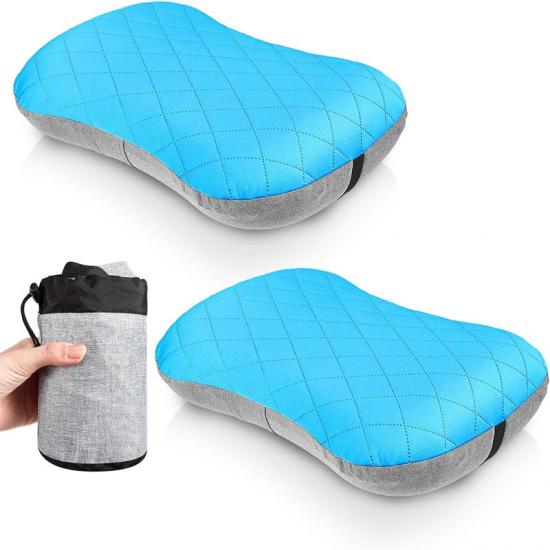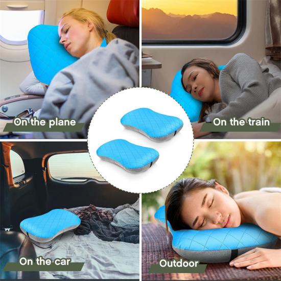 Almohada inflable Comfort de emergencia. Equipada con una válvula de botón fácil de usar, se llena en segundos con un suave soplo. Además, al controlar la cantidad de aire, puede ajustar fácilmente la altura y la firmeza de la almohada para adaptarse a diferentes necesidades de sueño.