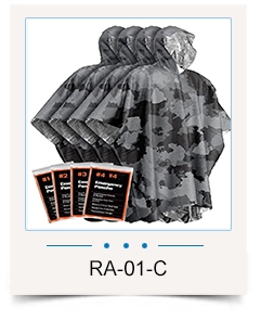 Además, el forro aislante para poncho de lluvia tiene muchos otros usos. Por ejemplo, su cordón en la cintura proporciona un ajuste adicional, lo que hace que sea fácil para el usuario ajustarlo a un tamaño que se adapte a su cuerpo. Además, su sujeción del revestimiento y sus ojales de metal de alta resistencia añaden aislamiento, lo que hace que sea fácil de usar como sujeción de cuerda, sombrilla, tienda de campaña de supervivencia, recolección de agua, camilla de transporte de emergencia, cubierta de hamaca, etc. En resumen, el poncho multifuncional tiene una amplia gama de posibilidades de aplicación en socorro en caso de desastre, ámbito militar, ayuda por donaciones, ingeniería de proyectos, materiales de reserva gubernamentales, etc.