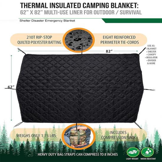 La mejor opción para acampar al aire libre, se puede utilizar como tienda de supervivencia temporal, toldo, aislamiento de hamaca, almohada, divisor de tienda, pantalla de privacidad, herramienta de transporte de emergencia, ayuda en caso de desastre, refugio oculto, bolso de mano, saco de dormir o aislamiento de tienda.