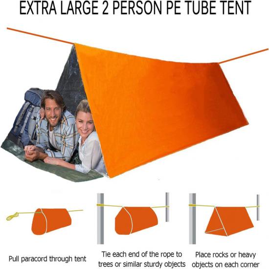Una tienda de campaña duradera y resistente, fabricada en polietileno con sistema de línea de vida. Es un producto de emergencia excelente para actividades al aire libre y situaciones de supervivencia.