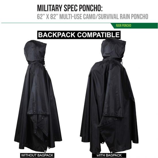 En el ejército, el poncho impermeable con cordón ajustable en la cintura también es un elemento importante del equipo. Durante las operaciones de campo, no solo protege de la lluvia, sino que también sirve como refugio. Su generoso tamaño permite llevar mochilas más grandes y proporciona espacio adicional a los soldados.
