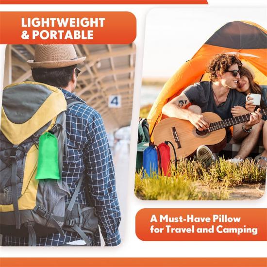 Cada almohada inflable suave Relief Rescue incluye una bolsa impermeable con cordón, que facilita su almacenamiento y limpieza, y evita que se raye o perfore con otros objetos. La bolsa está diseñada en colores vibrantes, con un total de 8 colores para personalizar tu almohada.