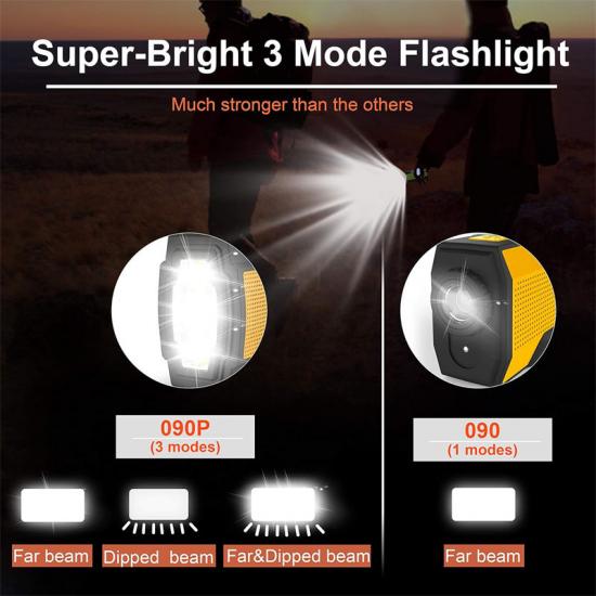 Luz de emergencia modo 3 +2: La radio portátil de rescate está equipada con una linterna ultrabrillante de 3 modos con un alcance máximo de más de 10 metros, que le proporciona una iluminación brillante en la oscuridad. También incluye una luz de lectura de 2 modos con sensor de movimiento que se puede apagar manual y automáticamente para ahorrar energía.