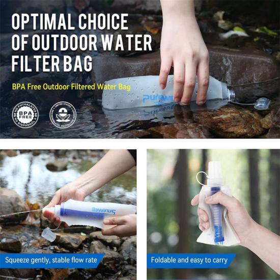Purificadores de agua reutilizables de calidad con boquilla de silicona para emergencias. Estos purificadores ofrecen una purificación de alta calidad, garantizando el acceso a agua pura y segura. Fabricados con materiales resistentes, son duraderos y fiables. Aptos para diversas situaciones, incluyendo emergencias y desastres naturales. Compactos y fáciles de usar, ofrecen una solución sostenible para agua potable limpia.