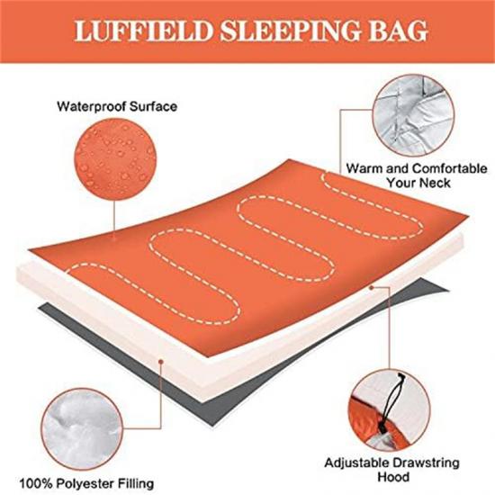 El saco de dormir Relief Rescue está fabricado con una gama de materiales de alta calidad que incluyen tela ripstop de poliéster 290T, forro de espuma de poliéster 240T y relleno de fibra de poliéster 400GSM. Con un peso de tan solo 4,5 libras/2 kg, el saco de dormir es liviano y fácil de transportar.