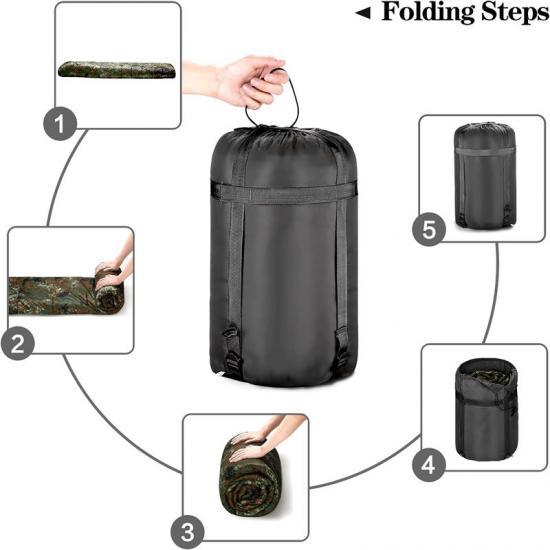 Las cremalleras de las piernas del saco de dormir de emergencia para desastres con revestimiento impermeable, transpirable y a prueba de humedad previenen eficazmente la penetración de humedad interna, lo que garantiza que permanezca seco y cómodo incluso en ambientes húmedos. Además, el diseño ligero del saco de dormir hace que sea fácil de limpiar y de secar rápidamente.
