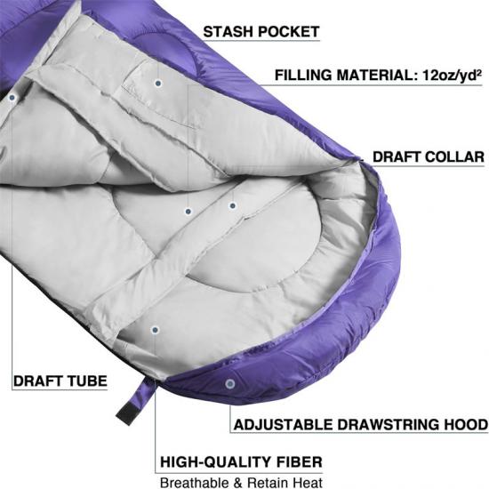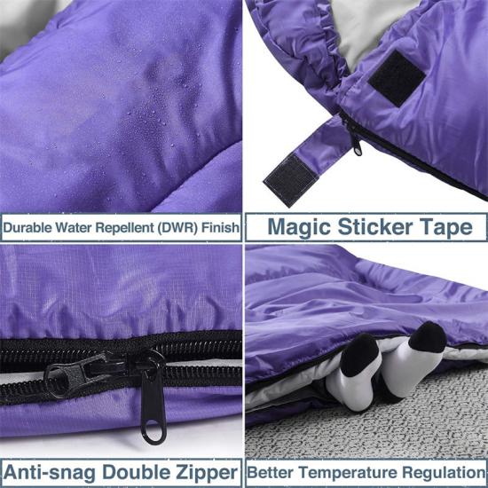 La parte inferior del saco de dormir con cordón para refugiados está diseñada con una cremallera para regular la temperatura y sacar los pies cuando hace demasiado calor. Además, la capucha con cordón ajustable mejora el aislamiento y calienta la cabeza, lo que hace que este saco de dormir sea una excelente experiencia de sueño en todas las temperaturas y condiciones climáticas.
