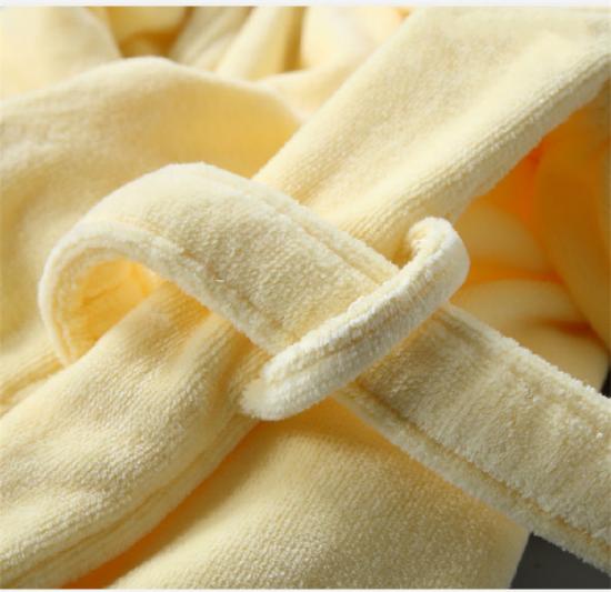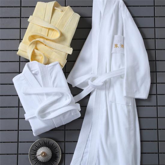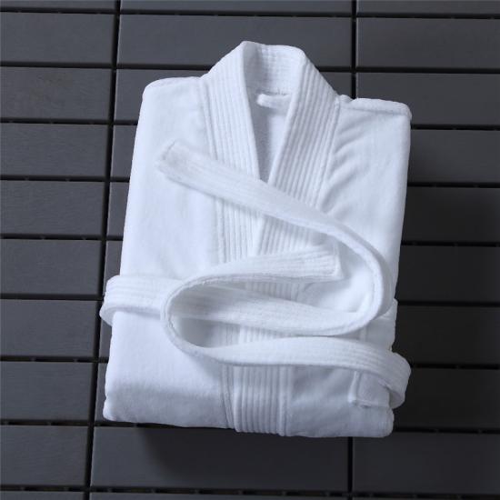 Es un Albornoz de felpa hasta la rodilla para ropa de cama de hotel y el hotel quiere dar a sus clientes una sensación de elegancia.