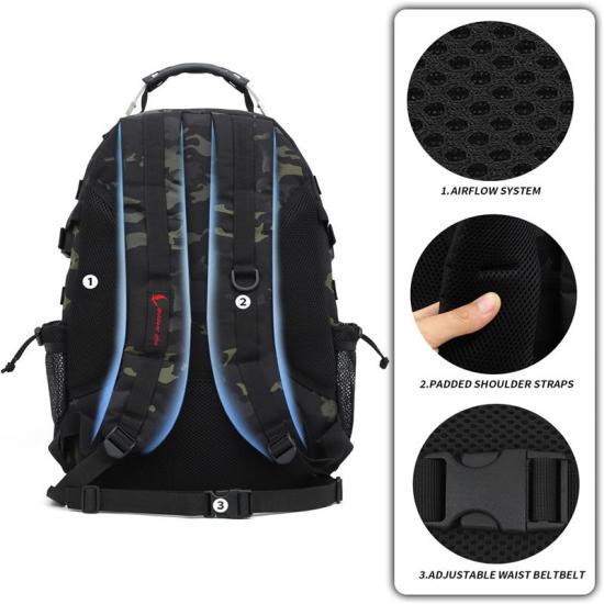 La mochila para exteriores está hecha de tela Oxford 600Dpvc, que no solo es resistente y duradera, sino también liviana.