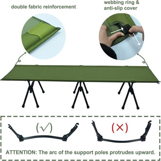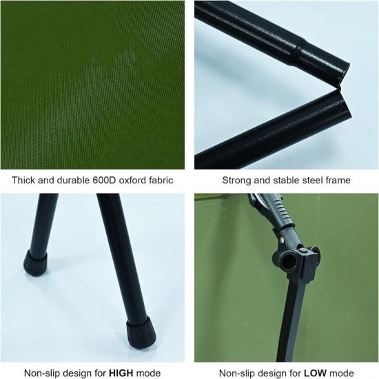 Con dos modos de altura, la cama plegable portátil súper barata para brindar alivio se puede configurar en dos alturas diferentes, 18 cm y 38 cm, para satisfacer sus diferentes necesidades. El ajuste de altura de 18 cm está más cerca del suelo, lo que proporciona una superficie para dormir más estable; mientras que el ajuste de altura de 38 cm proporciona un mejor aislamiento y ventilación.